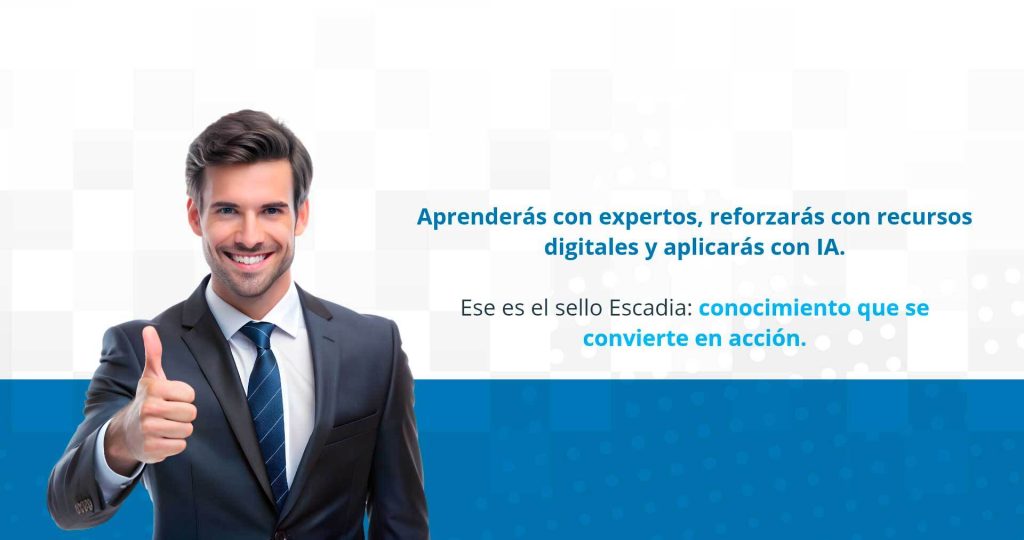 Recibirás una constancia con valor curricular, respaldada por Escadia, institución con más de 30 años de experiencia en formación ejecutiva.