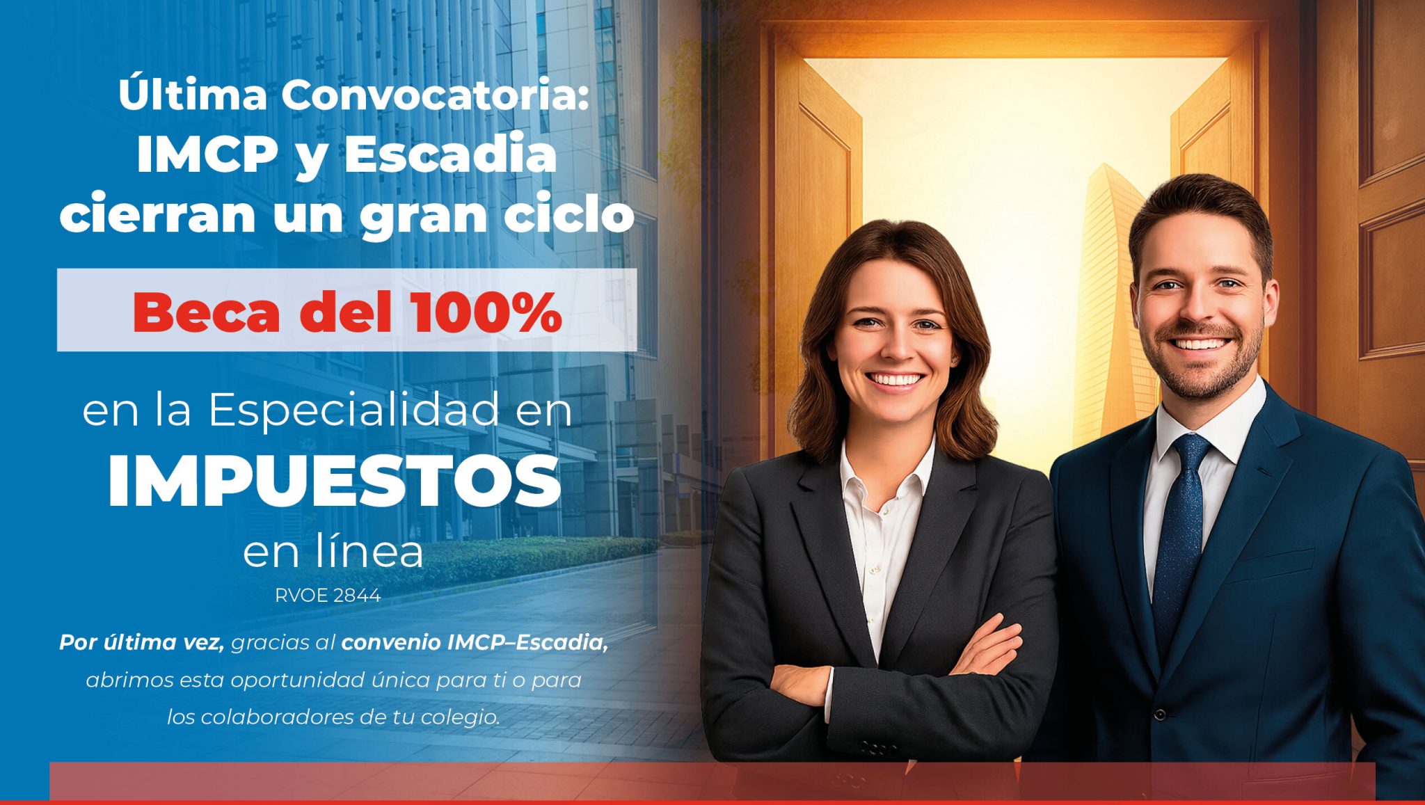 Por último vez, gracias al convenio IMCP – Escadia, abrimos esta oportunidad única para ti o para los colaboradores de tu colegio.